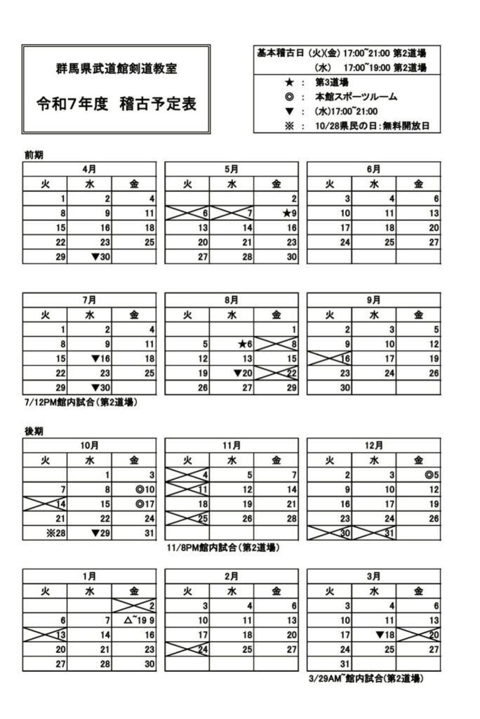 ★令和7年度 稽古予定表★