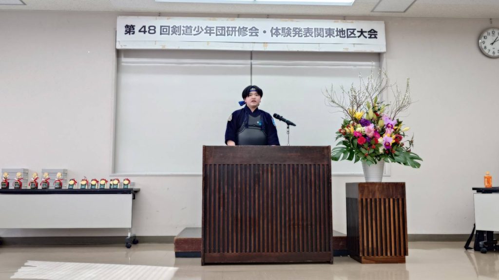 2026年3月19日 / 最終更新日時 : 2026年3月19日 gunmaken 試合 第48回日本剣道少年団研修会 体験実践作文関東大会 令和8年 1月12日㈪ 群馬県武道館剣道教室の吉野千桜さんが、群馬県の道場連盟で募集した作文で見事小学生の部で最優秀賞に選ばれ、 1月12日に山梨県で行われた関東大会で発表してきました! 題名「仲間と共に」 コメントを残す コメントをキャンセルメールアドレスが公開されることはありません。コメント 名前 メール サイト
